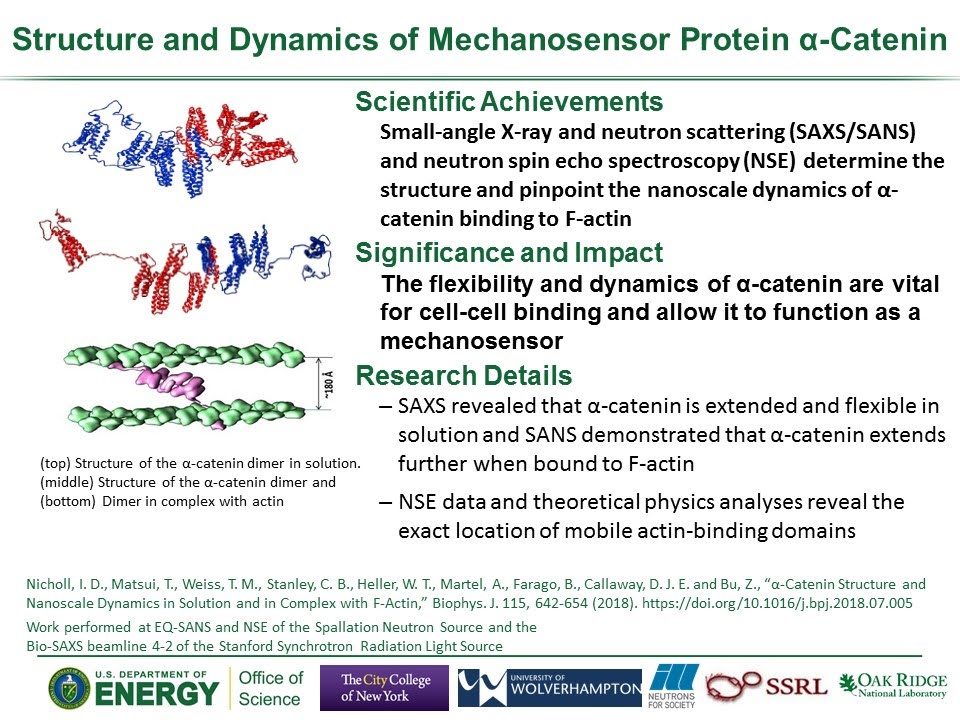 Callaway DJE (co-corresponding), Nicholl ID, Shi B, Reyes G, Farago B, Bu Nanoscale dynamics of the cadherin-catenin complex bound to vinculin revealed by neutron spin echo spectroscopy Proceedings of the National Academy of Sciences of the United States of America September 19, 2024121 (39) e2408459121 volume = 129 issue = 39 date =2024 pmid =39298480 doi = 10.1073/pnas.2408459121 url = https://doi.org/10.1073/pnas.2408459121